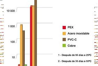 • A 25ºC, las bacterias de la Legionella permanecieron en las tuberías de acero inoxidable, PVC-C y PEX. En el cobre, no se encontró Legionella al finalizar la fase de estudio.