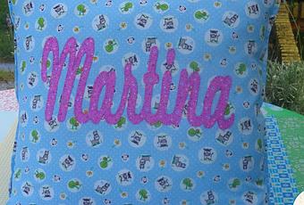 Pues lo que os decía. Martina es la hija de una amiga y este año en la guardería le han pedido un cojín. Así que su mami me pidió que le hiciera uno con la tela que usé para su mochila (la estampada con gatitos, ¿recuerdas? Aquí te lo contaba). Pero después de buscarla y no encontrarla por ningún sitio, busqué una nueva alternativa. La solución la encontré en L'atelier de Lucía. Tiendas on line de telas hay muchas, pero con Lucía he congeniado muy bien y siempre miro su catálogo por si lo que necesito lo encuentro en su tienda. ¡Y así fue!