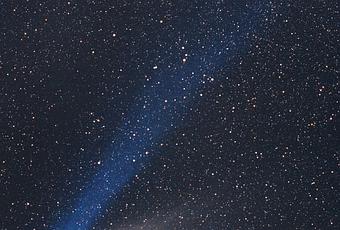 El cometa C/1995 O1 Hale-Bopp, el 14 de marzo de 1997. En esta foto obtenida con un telelente, los restos de la cola de polvo están a la derecha, mientras que el brillo, bien separados cola iónica azul está apuntando directamente en oposición al Sol. El cometa Hale-Bopp (cuyo nombre oficial es C/1995 O1) fue probablemente uno de los cometas más observados en el último siglo y uno de los más brillantes que se han visto en décadas. Pudo ser contemplado a simple vista durante 18 meses, casi el doble del tiempo que pudo observarse el Gran Cometa de 1811. El cometa Hale-Bopp fue descubierto el 23 de julio de 1995 a gran distancia del Sol, creándose desde entonces la expectativa de que sería un cometa muy brillante cuando pasara cerca de la Tierra. El brillo de un cometa es algo muy difícil de predecir con exactitud, pero el Hale-Bopp superó todo lo esperado cuando pasó por su perihelio el 1 de abril de 1997. Fue llamado el Gran Cometa de 1997.
