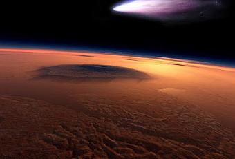 El cometa Siding Spring sobre la atmósfera de Marte.