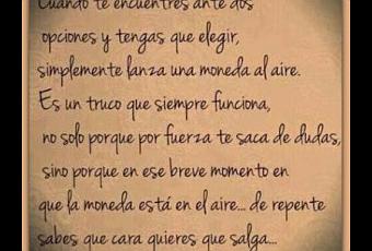A veces, las decisiones que uno tiene que tomar pueden ser de importancia relativa o ser determinantes y depender de ellas el resto de tu vida. ¡Y no estoy yo como para equivocarme en la elección! O sí, quizás equivocarme sea parte de aprender, pero ¿Quién quiere equivocarse?