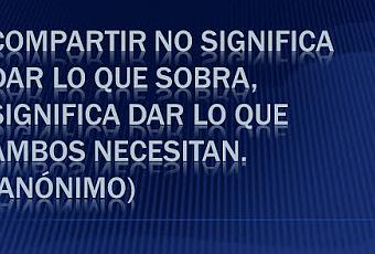 Compartir tiene una descripción muy facil pero muchas veces compartir algo nos resulta mas complicado de lo normal, no solo porque algunas veces hayamos sido lastimados por alguien que no valoro o entendió nuestras buenas intenciones, o por algún egoísmo que tengamos justificado en cualquier cosa, sino porque muchas veces confundimos compartir con deshacernos de aquello que nos sobre o no necesitamos.Compartir es algo que nos da mucha alegría, no es una obligación o deber moral esto no nos hace santos, si hemos de compartir algo ha de ser porque nos nazca en el corazón pues si lo hacemos esperando algo a cambio siempre estaremos equivocados, pues un regalo o donación no es un contrato o compromiso, además quien espera algo a cambio de sus buenas intenciones pierde su bondad y se llena de amarguras con cada decepción que experimenta.No esta mal regalar o donar aquello que nos sobra pero siendo honestos esto no alimenta en nada nuestro espíritu, cualquiera puede dar algo que le sobre o no necesita, pero solo aquellos que conocen lo que es en realidad compartir son capaces de dar aquello que mas les falta, por ejemplo aquel que muere de hambre tiene un pan encuentra a alguien que tambien necesita comer y le da una parte de su único alimento, o aquel que tiene miles de tristezas en su alma pero aun asi trata de alegrar a otra persona.Aun si desde un punto lógico dar lo que nos hace falta es perjudicial, lo cierto es que compartir no es muy saludable, no hay mejor forma de olvidar una tristeza que ayudar a otros a superar una dificultad, lo mas satisfactorio no es lo mas facil como dar algo que nos sobra es lograr algo que parece complicado como el lograr compartir lo que nos hace falta, esto siempre ayuda al espíritu a estar en calma.