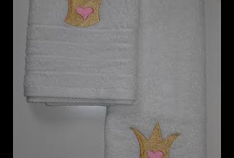 ¿Recordáis la toalla de la princesa Triana? Pues le gustó muchísimo, tanto que decidió que con dos toallitas de lavabo a juego, haría el conjunto perfecto.