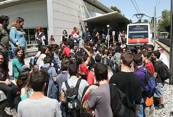 Estudiants de la UAB tallen el ferrocarril. Fuente de esta imagen:Asamblea de la Verneda-Sant Martí
