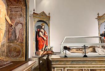 Una vitrina contiene un San José con el niño, de declarada ascendencia montañesina. Por último, un Cristo yacente anónimo de tamaño natural de rasgos muy serenos en hornacina de cristal y sobre una mesa de altar.