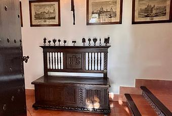 En este mismo vestíbulo nos encontraremos algunas joyas con un San Jerónimo Flagelado, una Virgen de Guadalupe mejicana o un cuadro de la Sagrada Familia con San Juan. En una vitrina podremos ver un terno de seda roja con bordados en oro del siglo XVII.