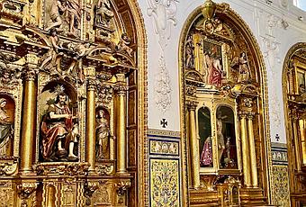 El muro de la Epístola de la iglesia de Santa Paula es más rico en retablos que el del Evangelio. En este caso son tres, dedicados a San Juan Evangelista, al Cristo de los Corales y a la Virgen del Rosario.