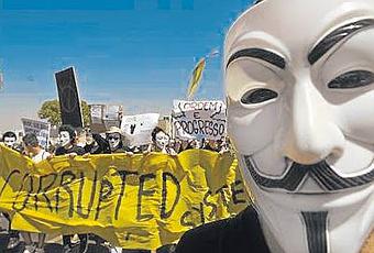 De Wall Street a Londres, pasando por Atenas, Madrid, Roma, Río de Janeiro y Seúl, miles de “indignados” que protestan por la crisis mundial, llevan la máscara inspirada en la novela gráfica V de Vendetta (1982-1988), que se ha convertido en un símbolo de resistencia al poder capitalista y las grandes corporaciones financieras. El creador de dicha historieta, el británico Alan Moore, de 58 años, no se sorprende que el símbolo de ficción que creó hace más de treinta años haya tomado tanta importancia.