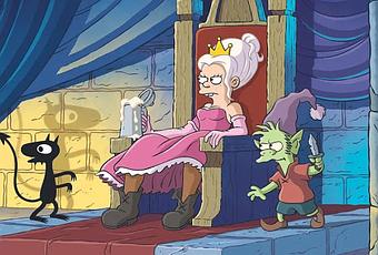 Netflix lanzó las primeras imágenes de Disenchantment , una serie de fantasía animada que presenta las voces de Abbi Jacobson, Nat Faxon y Eric Andre. Creado por Groening ( Los Simpson, Futurama ), el espectáculo tiene lugar en el reino medieval en ruinas llamado Dreamland y se centra en las hazañas de una princesa bebedora llamada Bean (Jacobson), su valiente amiga elfa Elfo (Faxon) y su personal demonio Luci (Andre) la serie combina ingenio con "ogros, duendes, arpías, diablillos, trolls, morsas y muchos tontos humanos".