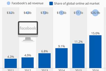 La siguiente imagen realizada por Statista te muestra el dominio de Facebook en el mercado de la publicidad en línea.