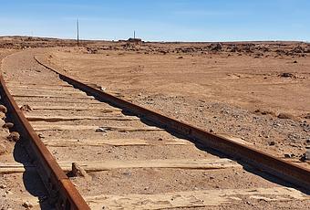 Todo este terreno está, en efecto, lleno de grandes terrones de sal cristalizada y mezclada con la tierra que sobresalen del suelo como gigantescas verrugas (no sé si naturales o causadas por la explotación) y conforman un paisaje casi extraterrestre. Añádanse a eso las vetustas edificaciones de la salitrera, algunos vallados de acero que acaban bruscamente y delimitan -por consiguiente- nada, y un tramo de ferrocarril que surge de las arenas como reptil subterráneo y, tras hacer una curva, vuelve a sumergirse en ellas trescientos metros más allá, y podrá tal vez el lector hacerse una idea de lo extraño y surreal de este paisaje.