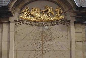 El gran patio que da acceso a la Iglesia de la Sorbona tiene un gran reloj solar declinante con analema y con el zodiaco. El cuadrante está firmado por Aubert en 1876.