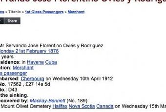 Entre los cientos de víctimas del Titanic había también un cubano: Servando José Florentino Ovies y Rodríguez, de 36 años de edad, residente en la ciudad de La Habana, Cuba.