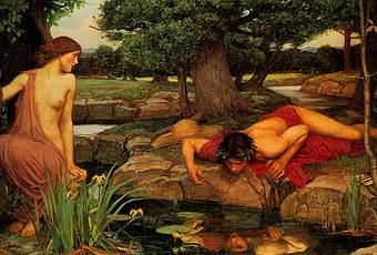 Érase una vez hace muchos años, en el país de las ninfas del agua, que estos espíritus de los ríos y arroyos encarnados en gráciles doncellas vivían y jugaban felices como niñas a la orilla de un estanque. Una de ellas, Liríope, casada con el río Cefiso; tuvo un hijo muy hermoso al que llamó Narciso y que, con el tiempo, creció y se convirtió en un joven bellísimo. Era tan guapo que todas las ninfas jóvenes quedaban prendadas de él y muchas deseaban en secreto conseguir su amor. Incluso un joven llamado Ameinias sintió tal admiración por su belleza que prometió dar su vida por él, si lo necesitaba. Narciso se enteró y como su frivolidad era tan grande como su hermosura, se rió de él y poniéndole en las manos una espada le ordenó que se quitara la vida. Ameinias, tristemente, acabó con su vida delante de Narciso que no se conmovió en absoluto.