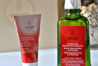 Weleda nos presenta una línea de productos basados en el poder antioxidante de la granada, entre ellos encontraréis dos de los productos que hoy os muestro, el Aceite Corporal Regenerador de Granada y la Crema de Día Reafirmante de Granada.
