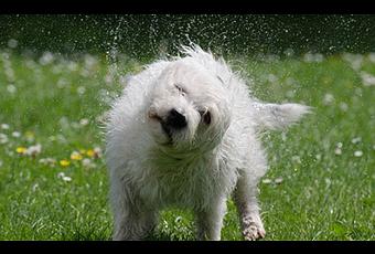 1. Tras el baño en el mar o en la piscinaSi tu perro se baña en la piscina o en el mar (en las zonas en las que está permitido) o le encanta jugar y revolcarse en la arena de la playa, es muy conveniente que después le enjuagues bien con una generosa cantidad de agua dulce tibia, o fresquita si está al aire libre; no hace falta que utilices champú, solo es para eliminar los restos de sal, de arena o de cloro, que le pueden dañar la piel. Para los perros propensos a los problemas cutáneos (alergias, eccemas o dermatitis), tu veterinario te aconsejará si es conveniente permitirles estos baños.