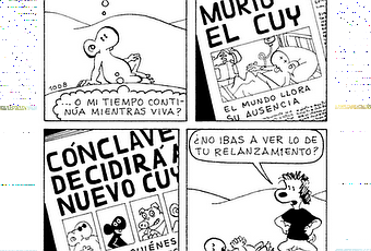 El Cuy de Juan Acevedo esta tomando nuevamente vuelo en la pagina web "El diario del Cuy", esto después de la aun inexplicable salida de su tira "Barrio" de la pagina central de Peru21 para dizque, dar mas espacio a la foto y la agenda cultural, tal desaguisado nos privó de un espacio para la Historieta peruana , por ello se redactó una carta a la cual se pueden seguir sumando todo aquel que desee. A pesar de este trago amargo, Juan decidió seguir para adelante como siempre, esta vez lo hace desde su blog, o mejor dicho el blog del Cuy, regalándonos unas tiras realmente antologicas, pero la cosa no queda ahí la verdadera buena nueva (como la Navidad misma) es que el proximo año tendremos posiblemente en kioscos y librerías recopilatorios de las tiras del Cuy y finalmente un libro total, casi enciclopédico bajo el tentativo nombre de "Todo Cuy" que será sin dudas un éxito como lo han sido las recopilaciones dedicadas a "La Araña No", "Las aventuras del Cuy" y "Lima Ciudad de Reyes", mientras siguen llegando las firmas (AQUÍ) vamos disfrutando de El Cuy inédito desde su blog.