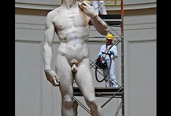 La figura de Miguel Ángel Buonarroti, hecha por encargo de la Opera del Duomo de la catedral de Santa María del Fiore de Florencia, mide 5,17 metros de altura y pesa 5.572 kilogramos. La escultura, entre 1501 y 1504, representa al rey David bíblico en el momento previo a enfrentarse con Goliat, y fue acogida como un símbolo de la República de Florencia frente a la hegemonía de sus derrocados dirigentes, los Médici. Fue tallada en un enorme bloque de mármol de Carrara por dos escultores encargados de la comisión antes de que Miguel Ángel asumiera el control, pero ninguno pudo trabajar con éxito la piedra de baja calidad proporcionada.