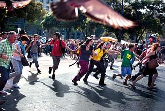 centro de Madrid invitando a las personas, mayoritariamente mujeres, a