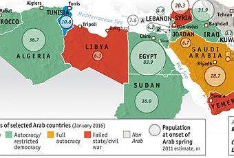 Guerras de baja intensidad en Iraq y Afganistán desde la invasión estadounidense. Una terrible guerra civil en Siria que, de momento, ha costado la vida a 300.000 personas. Un caos institucional en Libia que ha convertido al país en el hub del yihadismo internacional entre el Sahel y Oriente Próximo. Egipto convertido en un polvorín bajo una dictadura que ha frustrado los anhelos de Tahrir y terribles regímenes totalitarios en el Cuerno de África.