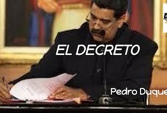 El DecretoConsiderando:Que la voz del pueblo es la voz de Dios y como perdimos al pueblo y a Dios, no nos queda otra que evadir la voz de Dios y la del pueblo, en consecuencia, tendremos que saltarnos a la torera las normas constitucionales y legales, para que el pueblo entienda que después de 20 años en el gobierno nosotros no estamos aferrados al poder solo queremos gobernar hasta el Dos Mil siempre y para siempre.Considerando:Que los gochos vuelven a andar resteaos, los orientales tienen una tibiera de padre y señor nuestro, los llaneros andan alebrestaos y agilaitos, los indígenas andan invocando la maldición Dabucurí, los maracuchos quieren mandarnos pa´r Sebillo, los caraqueños están a punto de perder el miedo y decirle al resto de venezolanos que sigan el ejemplo que Caracas dio.Considerando: