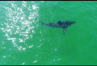 Imagen de un tiburón blanco visto desde el aire con un dron.