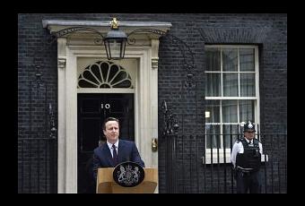 El primer ministro británico, David Cameron, ofrece un discurso a la nación ante el número 10 de Downing Street. (Andy Rain/EFE)
