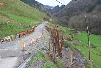 El deslizamiento de tierras que afecta a la carretera de acceso a Gaztelu en el municipio de Leaburu se produce en enero de 2013 a consecuencia de intensas lluvias que provocan que grandes masas de tierra arcillosa impregnada totalmente en agua se deslicen ladera abajo como si fueran un fluido. Una antigua mina de yeso en la zona desencadena además un hundimiento constante a pesar de rellenos y arreglos provisionales.