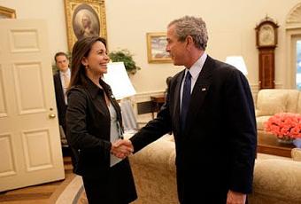 Mucho se habló hace unos años, sobre todo en la prensa oficialista venezolana de la visita de María Corina Machado a la Casa blanca para tener una reunión con el entonces presidente estadounidense Geogrge W. Bush. El tiempo ha pasado y con el reciente triunfo de la oposición en las elecciones parlamentarias en la tierra de Chavez y Maduro (6D 2015) reverdece un furor 'revolucionario' de los adeptos al gobierno bolivariano en contra de la que llaman una mujer 'vendida', 'apátrida' y 'oligarca del imperio'. Lo cierto es que nuevos caminos perfilan en Venezuela un cambio, uno en el que despues de 17 años la oposición logra un significativo triunfo que hace contrapeso a Maduro y sus seguidores.Charlemos un poco de la visita de Maria Corina a Bush.