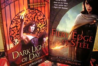 La autora Jill Archer era una desconocida para mí hasta hace poco. Su trilogía no existía en mi radar. Cuando vi las portadas y leí las sinopsis, sentí cierta atracción pues la fantasía y la magia son importantes en mi carrera lectora. Aún así, no hubo ningún terremoto, no se produjo ninguna comunión cósmica. Nada vaticinaba lo que iba a pasar.¿Recordáis esa sensación de leer un libro que conecta contigo a todos los niveles y sientes la necesidad de buscar todo lo que ha escrito ese autor? Exacto. Automáticamente, el escritor pasa a tu lista de VIPs. Se graba tu nombre en la memoria, lees su página web en busca de noticias, sus próximos libros tienen un sitio preferente en la cesta de la compra.¡Soy fan de Jill Archer!¿Pero por qué?Porque me ha dado lo que todo lector quiereaunque no sepa expresarlo. ¿Tenéis alguna debilidad a la hora de elegir tema de lectura? Una de mis (muchas) debilidades es la figura de los demonios. Siempre me ha atraído, ya sea en formato malvado (lo más usual) o algo más humanizado.En DARK LIGHT OF DAY y FIERY EDGE OF STEEL me he encontrado con una historia muy original que mezcla fantasía, demonología, magia y romance new adult, algo que no me esperaba y me ha conquistado completamente. Lo que ha hecho volar mi imaginación de las dos novelas que he leído hasta el momento es:- una protagonista voluntariosa, sensible e inteligenteNoon procede de una familia poderosa, pero ha heredado el poder equivocado. Su magia destructora pertenece a los hombres, ella es la única mujer en poseerlo así que el secreto le acompaña a la escuela de Derecho de San Lucifer. Debe declararlo antes de su vigésimo primer cumpleaños o será una fugitiva. - el mundo inventado por la autora está lleno de detalles creativosLa guerra entre ángeles y demonios ocurrió hace milenios, el resultado: los demonios ganaron. Sus descendientes tiene poderes mágicos y conviven junto a humanos bajo el gobierno tiránico pero disciplinado de los demonios. - el uso de la ley como parte integral de la tramaNunca había visto que las leyes, su estudio y su aplicación fueran un elemento tan importante en una novela de fantasía. Me ha dejado maravillada la escuela de Derecho, donde Noon y otros abogados y magistrados estudian asignaturas alucinantes como Pecado y Castigo, Manipulación, o Actos Oscuros. En las aulas, los profesores proponen casos legales para su desarrollo y aprendizaje de forma práctica por los estudiantes. Deben entrenar su poder mágico en el caso de los magistrados, pues son los únicos capaces de someter a los salvajes demonios cuando pierden el control (como los rogare o renegados, o si cometen infracciones). En cuanto a los abogados, se encargan de defender a los demonios en los litigios.- mitología demoniacaLos demonios son adorados como deidades que representan los ríos, la lujuria, la mentira o la naturaleza. Me parece fascinante cómo la autora ha insertado la figura de estos monstruos bíblicos en el folklore primitivo. Sus personalidades psicópatas, instintivas pero también ciegamente devotas de la ley y las normas son tan protagonistas como Noon y Ari.- romance más allá de los besosNoon y Ari: atracción, cautela, pero al final se compenetran, y el resultado es un romance peligroso, sensual y conmovedor. Otra sorpresa en una novela de fantasía. Todos los poseen poderes emiten un aura que es como una firma que los identifica. Informa de su fuerza, pero entre Noon y Ari sirve para que conecten emocionalmente. Es maravilloso.- una trama enrevesada de misterio, magia, amor, ambición y buen humorLo tiene todo. Hay un bellísimo romance con escenas íntimas mientras Noon intenta integrarse en la escuela, aprender a controlar un poder que odia, olvidar que su contacto mata lo que está vivo como las plantas o fresco como las verduras, y elegir entre conservar su naturaleza desviada o hallar un hechizo que la libere de él. Hay muchísimos detalles que me tenían totalmente prendida de la lectura. La relación de Noon con su familia, la historia de la guerra entre demonios y ángeles, las costumbres de los territorios, la obsesión de los demonios por la ley. Hay una auténtica evolución en Noon, en su comprensión de sí misma y de lo que tiene que afrontar. Todos los personajes aportan más riqueza a la trama y a las interacciones y diálogos.