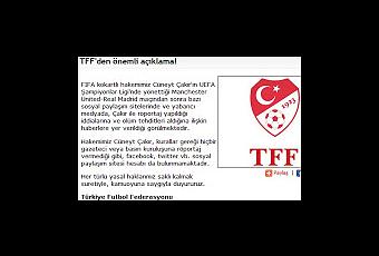 "Después del arbitraje de Cüneyt Çakir en el partido de la Champions League Manchester United-Real Madrid y que en algunos sitios de medios sociales, prensa local y extranjera se mencionara que hay entrevistas y comentarios de Cüneyt Çakir de estar recibiendo amenazas de muerte, aclarar que nuestro árbitro Cüneyt Çakir no ha dado ninguna entrevista a periodistas o prensa debido a las reglas, y también que no tiene ninguna cuenta en Facebook, Twitter, etc"A la izquierda la captura de imagen de la publicación en la Federación turca y la traducción arriba del escrito en el que desmienten cualquier tipo de entrevista del colegiado del partido disputado entre Manchester United y Real Madrid, el ya famosos Sr. Cakir. Abajo la presunta entrevista realizada en el diario As y que según lo escrito es una fantasía de alguien. ¿A quien creemos? A la Federación Turca no la conocemos demasiado, a la prensa deportiva....Futbol Base y mas