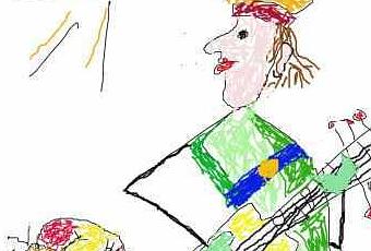 Este dibujo realizado por una niña, finalmente no llegó a las manos del vago real, la catetada escolar de entregar dibujos al gobernante forma parte del régimen en decadencia en el que vivimos. Al igual que hacía el fascista de franco, el parásito Juan car también le gusta rodearse de sus siervos como buen amo.