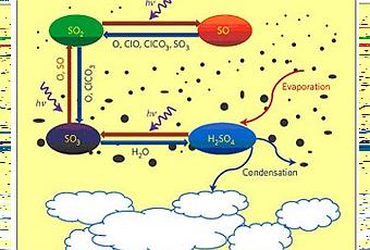 El dióxido de azufre también se encuentra en la Tierra, siendo liberado principalmente por erupciones volcánicas. A veces, alcanzando alturas de hasta 20 kilómetros, se convierte en ácido sulfúrico, provocando la formación de pequeñas gotas. Las gotas reflejan parte de la radiación solar de vuelta al espacio, dando lugar a un descenso de las temperaturas de la superficie. Inspirándose en este proceso, el químico y meteorólogo Paul Crutzen, ganador del Premio Nobel de Química de 1995, propuso hace varios años que sería posible liberar artificialmente grandes cantidades de dióxido de azufre a una altitud de 20 kilómetros con el fin de enfriar las temperaturas de la superficie y contrarrestar el efecto invernadero.
