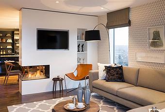 La búsqueda de estilo en la decoración de una vivienda puede resultar complicado, en este caso, el diseño y el uso audaz del color, han conseguido una selección perfecta para expresar el espacio. Un apartamento, en el que la cocina, es parte de un conjuto elegante, el negro como protagonista y un paso, con una chimenea integrada, en la que es el punto focal visual … mientras que el área de trabajo, con plena disposición, ha optado por un diseño de lo más creativo, con una pared pintada a modo de retrato, y en la que se ha convertido en la obra de arte de la casa. Inspírate!!!…observa su interior, y apreciarás un interiorismo aún es más interesante.