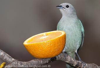 Hoy después de varias semanas poniendo bananas en el comedero aproveché para cambiar el menú por naranjas; se ve que tuvieron buena aceptación porque en menos de una hora los Celestinos dejaron solamente la cáscara pelada. Le dedico estas fotos a mi amigo Omar "Pantu" Zamudio que me regaló las naranjas y para que vea que no me las como yo =). A este celestino en particular (al que le falta el ojo derecho) lo tengo hace mas de un año frecuentando mi patio.