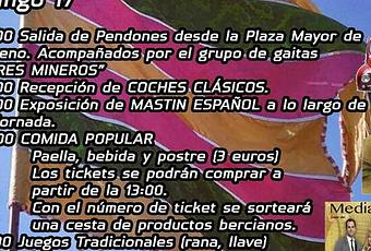 12:00h Salida de pendones desde la plaza Mayor de Toreno acompañados por eñ grupo de gaitas “Aires Mineros”