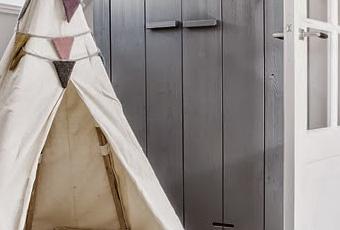 Una habitación amplia y luminosa apta para el descanso y para la zona de juegos, donde un tipi hará las delicias de los peques de la casa. Esta decorada en tonos neutros con textiles acogedores y un gran numero de cojines y muñecos de trapo.
