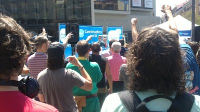 “Cuantas campañas llevamos escuchándoles decir: ¡Que viene la derecha! –exclama el coordinador de IU, desde Barcelona, a la que acude para lanzar otro mitin–. Cómo es posible que lleven cuatro años haciendo políticas de derechas y ahora saquen el espantajo de la derecha? Nosotros tenemos nuestros propios miedos: miedo a perder el trabajo, a reclamar más salario, a sindicarse, a no poder pagar la hipoteca, a no llegar a cotizar lo suficiente para tener una pensión digna, a opositar… En cambio, otros no tienen miedo. Son los ‘especuladores’, los banqueros, los corruptos o los que se ponen al servicio del poder económico. Los ‘pudientes’, tienen sólo un miedo: el que los de abajo, algún día, pierdan el miedo”. Lara defiende que el presidente no puede alentar ese “espantajo de la derecha” cuando “pacta sistemáticamente todos los días con ella en el Parlamento”. La medicina para frenar esa “lucha de clases” que los “ricos” están “ganando” es sencilla para IU, y no cesa de repetirla en la primera fase de la campaña: rebelión, sublevación, indignación. La idea de la contestación social a los ajustes también es presentada por Joan Herrera, secretario general de ICV, y Alfonso Salmerón, candidato de la coalición por L'Hospitalet: “Quieren que pasemos del Estado del bienestar al Estado de la caridad. Hay que decirles que no a aquellos que se sienten impunes”, socialistas y CiU, grita Herrera, guiñando el ojo a los electores del PSOE. Y Salmerón: “Los vuestros somos nosotros, los que no nos hemos resignado”.