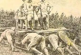Dibujo de la época colonial holandesa en Indonesia que muestra el trato esclavo que dieron a los nativos