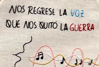 Como ya conté, mi mamá y yo estuvimos en la exposición en noviembre de 2021. La sala estaba cubierta de piezas de tela bordadas por manos que nunca había conocido, pero que de un modo u otro me desarmaron. Había crecido con una imagen de los miembros de la guerrilla de las FARC llena de prejuicios y presunciones que no me había preocupado por criticar a fondo. Reconozco que apoyé el proceso de paz, lo vi como un camino hacia la construcción de un país diferente. No obstante, en mi cabeza todavía veía a los firmantes como esos enemigos sin rostro de los que había oído tanto a lo largo de toda mi vida. Eran una sombra tapada por un velo que no me había preocupado por correr. Me sentía como en Men Against Fire, un capítulo de Black Mirror en el que un grupo de soldados tiene como misión exterminar a unos seres terroríficos sacados de ultratumba y que denominaban «cucarachas». En el transcurso del episodio uno de los soldados descubre que estos seres no eran monstruos, sino que el ejército había insertado en su cerebro un implante de realidad aumentada que manipulaba la forma en la que los veía. Las cucarachas eran verdaderamente civiles desarmados víctimas de un plan eugenésico. De un modo u otro las noticias que vemos todos los días y las creencias que heredamos modelan la forma en la que vemos el mundo y las personas que habitan en él. A través de los bordados exhibidos en las paredes y los dispositivos museográficos, empecé a llenar esas sombras que conocí pequeña como «guerrilleros» y después como «excombatientes» o «firmantes de la paz» de un contenido que desconocía. Descubrí una narrativa llena de anhelos interiores, vidas truncadas por el conflicto, miedos y sueños de un futuro mejor. Humanicé al enemigo interno, entendí que ese enemigo tenía rostro.