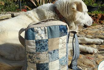 Le añadí una tela más en azul para el lateral y el asa, junto con otras dos en beige para bolsillos interiores y forro. Cremallera para el cierre y regulador en el asa, todo lo que a mí me resulta más cómodo. Interior con bolsillos y poco más.