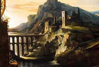 Y de este modo compondría Theodore Géricault sus dos obras de dos paisajes románticos italianos, Paisaje con Acueducto y Paisaje con tumba romana, ambos de 1818. El primero es un atardecer, el segundo, un amanecer. Efectivamente, porque la luz del sol al atardecer es más poderosa, más brillante, más desgarradora de un resplandor llameante que contra las cosas aún su luminosidad perfilará con sus rayos. Y es así como, en la primera obra, veremos la luz en la parte izquierda del lienzo amarillear poderosa. En el otro lienzo la luminosidad solar será más suave, más agradecida, salvadora ahora de sombras, algo con lo que la inclinación radiante del sol acabará poco a poco venciendo ya las recónditas esquinas más ocultas a su luz. Pero, sin embargo, todos aquellos elementos se precisarán para llevar a cabo un paisaje romántico por excelencia; un paisaje, es decir, un espacio ahora solo para recrear con él un único sentido artístico, no para contar alguna cosa, o para describir algo concreto, o para relatar una leyenda, o para denunciar alguna calamidad. No, será tan solo para emocionar con el espíritu que de su luz, la de la mañana o la de la tarde -nunca un paisaje romántico será al mediodía-, pueda ya componerse en un escenario efímero, porque el escenario romántico no solo buscará retratar un espacio, sino también el tiempo... Porque las dos cosas serán aquí inevitables; como la inutilidad poderosa de lo que representa, como la grandiosidad tan limitada de las cosas, como la innecesaria esperanza de sus formas, o como la irrelevancia más universal de lo vivido...