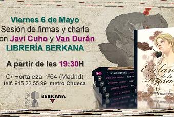 En una nueva colaboración Librería Berkana de Madrid, acogerá el viernes 6 de Mayo a partir de las 19:30 la charla y sesión de firmas de Javi Cuho y Van Durán, guionista y dibujante en su primera aparición conjunta pública con la obra reciente El Esclavo de la Rosa. Os esperamos.