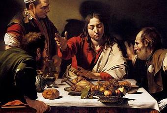 En el cuadro que ilustra, vemos esta técnica utilizada para representar los brazos de Cristo y de Santiago, logrando resaltar los gestos (en el caso de Cristo, la bendición de los alimentos) y dar mayor profundidad a la escena. También podemos apreciar que tomamos el ejemplo del Barroco y de una obra del genial Caravaggio, cuando la técnica ya está muy perfeccionada, como resulta evidente.