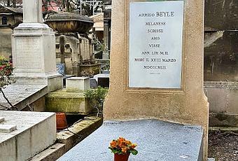 En cualquiera de los camposantos parisinos cuentan con planos que ceden gratuitamente, en los que pueden verse las distintas calles que configuran el recorrido por las tumbas más carismáticas, resultando relativamente sencilla su localización. Asimismo y caso de que se necesitasen en este paseo entre tumbas, existen también guías profesionales que te acompañan durante esta apasionante visita, explicándote las anécdotas de la vida y los pormenores de la muerte de los inquilinos que las ocupan.Otra de las últimas moradas que pueden verse en el cementerio de Montmartre es la del escritor francés Stendhal, uno de los máximos exponentes del realismo romántico, al que debemos obras de la calidad de un "Rojo y Negro", o "La cartuja de Parma"...A Stendhal también debemos agradecerle el Síndrome que lleva su nombre (Síndrome de Stendhal), que describió durante su estancia en Italia, y que consiste en el éxtasis y mareo que se produciría al contemplar una acumulación de arte y belleza en muy poco espacio y tiempo. Stendhal lo experimentó por vez primera en la basílica de la Santa Croce de Florencia.