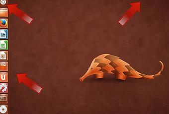 La siguiente parte del escritorio de la cual os voy a hablar es el Lanzador o Launcher. El Lanzador es la barra que esta en la zona izquierda de la pantalla y que va de arriba a abajo, esta señalada por la flecha en la imagen. En el Lanzador esta, entre otras cosas, el Dash. Todos los iconos que hay en el Lanzador son accesos directos, que al pulsarlos, abrirán alguna aplicación. El Dash es fijo, no puede quitarse y la papelera también, pero los demás se pueden borrar y también se pueden añadir nuevos. Cada icono nos sirve para abrir su correspondiente aplicación y también para mantener minimizada si lo queremos el programa en cuestión, es decir, sirve también como gestor de ventanas. Para añadir un acceso directo nuevo bastara con arrastrar un icono desde el Dash y dejarlo caer encima del Lanzador. Para quitar un elemento del Lanzador, podemos hacer click en con el botón derecho del ratón sobre el icono que queramos quitar y hacer click en el menú que sale en la opción “No mantener en el Lanzador”. El Lanzador de Ubuntu no se puede mover de sitio, con las herramientas que hay en Ubuntu, ya que esta pensado así para aprovechar el espacio en las pantallas actuales, ya que la gran mayoría son panorámicas.