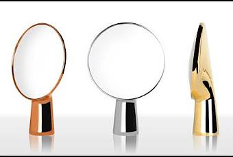 El espejo Cyclope, creado por la joven diseñadora francesa Ionna Vautrin, tomó este nombre de los espejos convexos (que en francés se llaman “ojos de bruja”). Vautrin coge este objeto mágico y lo coloca sobre un delicado cono trabajado en arcilla, creando un espejo de sobremesa con un carácter fuertemente escultural, evocando las misteriosas estatuas monolíticas de lejanas culturas primitivas o la elocuencia minimalista de escultores como Brancusi y Moore.