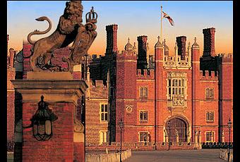 A 20 kilómetros de Londres, en la ciudad de Hampton, se ubica la que fue la residencia favorita del rey Enrique VIII de Inglaterra quien estableció su corte aquí en el año 1536. El Palacio de Hampton Court está distribuido en cuatro patios sin una organización regular aparente y con distintos tamaños.En nuestros días entre el palacio y el río se ubica la conocida como “Outer Green”, una plaza de gran tamaño con un foso, que es salvado por el puente que ordenó construir el propio monarca y sobre el que se pueden contemplar todavía los escudos, los cuales están sustentados por los tradicionales leones y unicornios, emblemas del rey Jorge II.