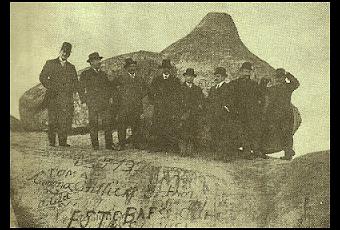 Blasco Ibañez y amigos junto a la Piedra Movediza de Tandil. Fuente de la fotografía: Nueva Era, Bodas de Oro (1919-1969). (1)