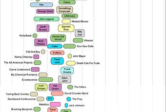 Los resultados de la prueba de acceso a varias universidades americanas han dado pie a que Virgil Griffith, creador de varias aplicaciones web y software para pc, haya podido categorizar los gustos musicales de cada estudiante en base a su inteligencia en este cuadro que titula Music That Makes You Dumb (“Música que te hace estúpido”).